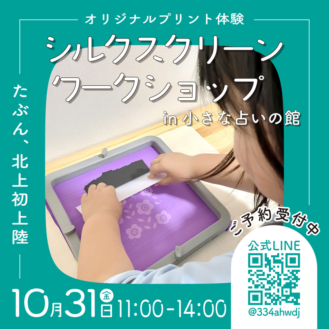 ハンカチや巾着などに、かわいい模様や文字を印刷できる体験型ワークショップを開催します。