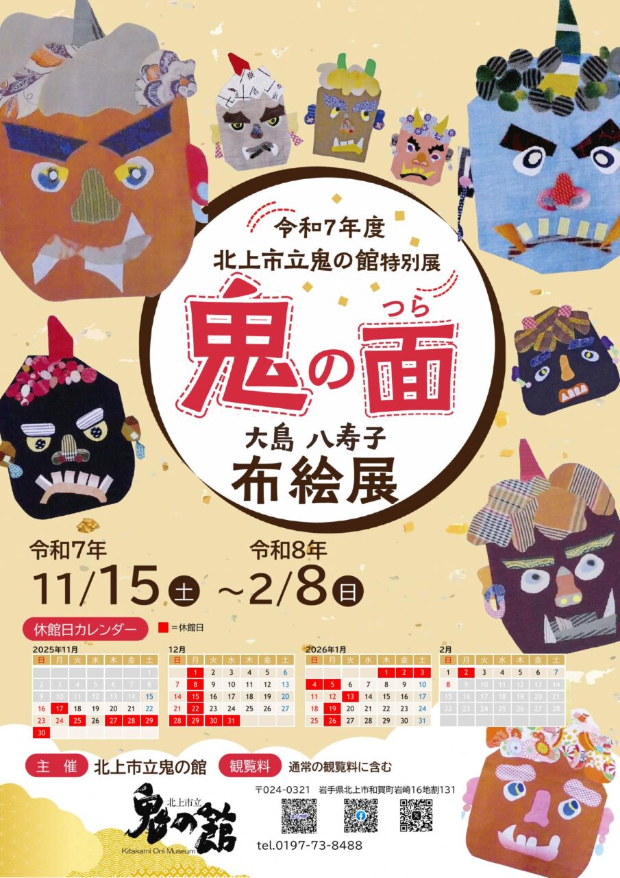 童話「泣いた赤鬼」に感銘を受けた宮城県石巻市在住の布絵作家・大島八寿子氏が制作した約100点の布絵を展示します。