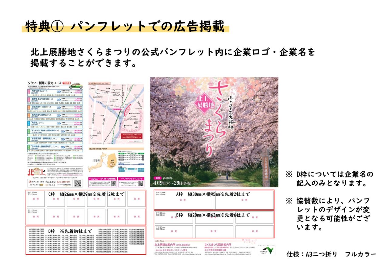 北上展勝地さくらまつり実行委員会は、まつりの趣旨をご理解いただき、広告協賛をいただける企業を募集しております。