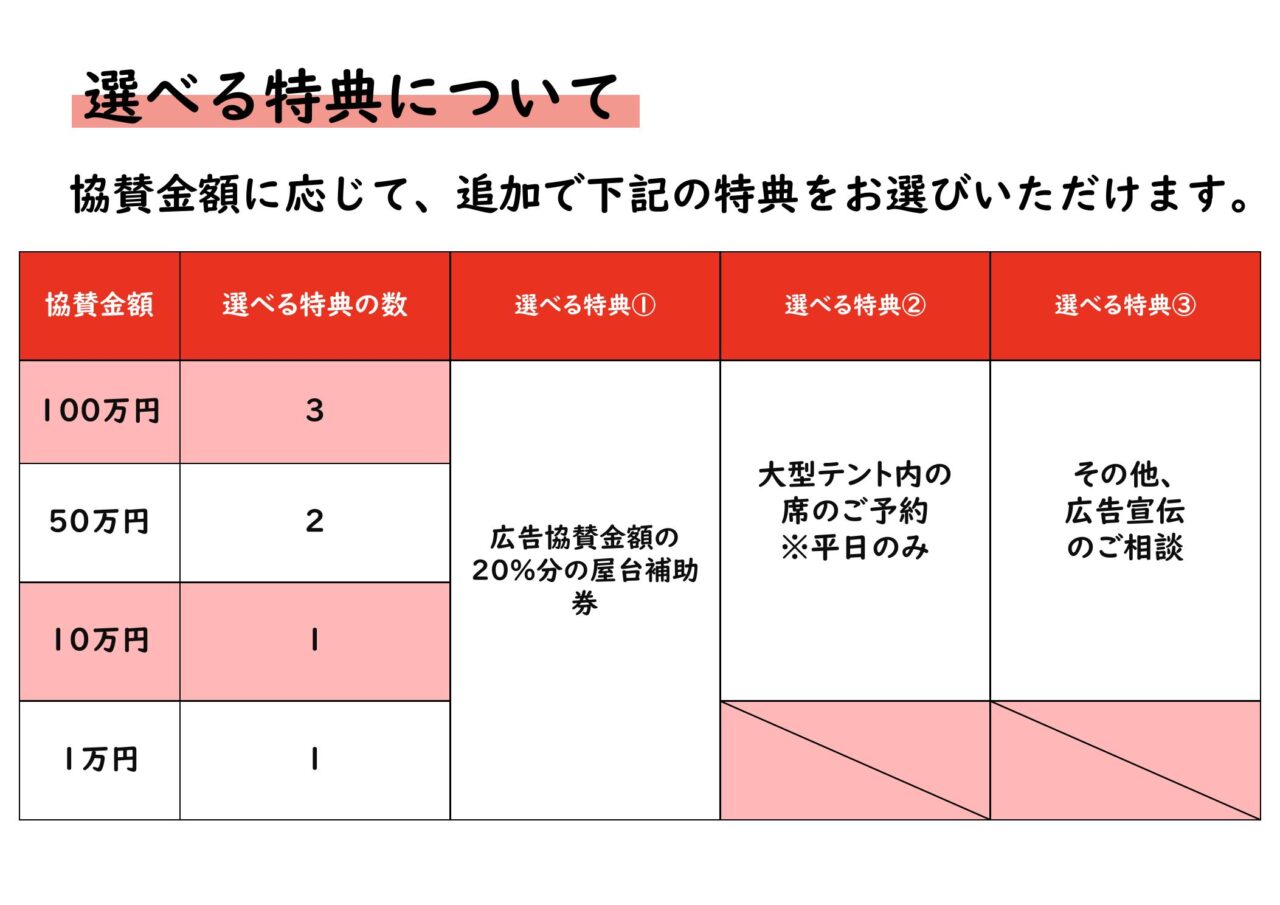 ご協賛いただいた場合には、広告協賛特典をご用意させていただきます。