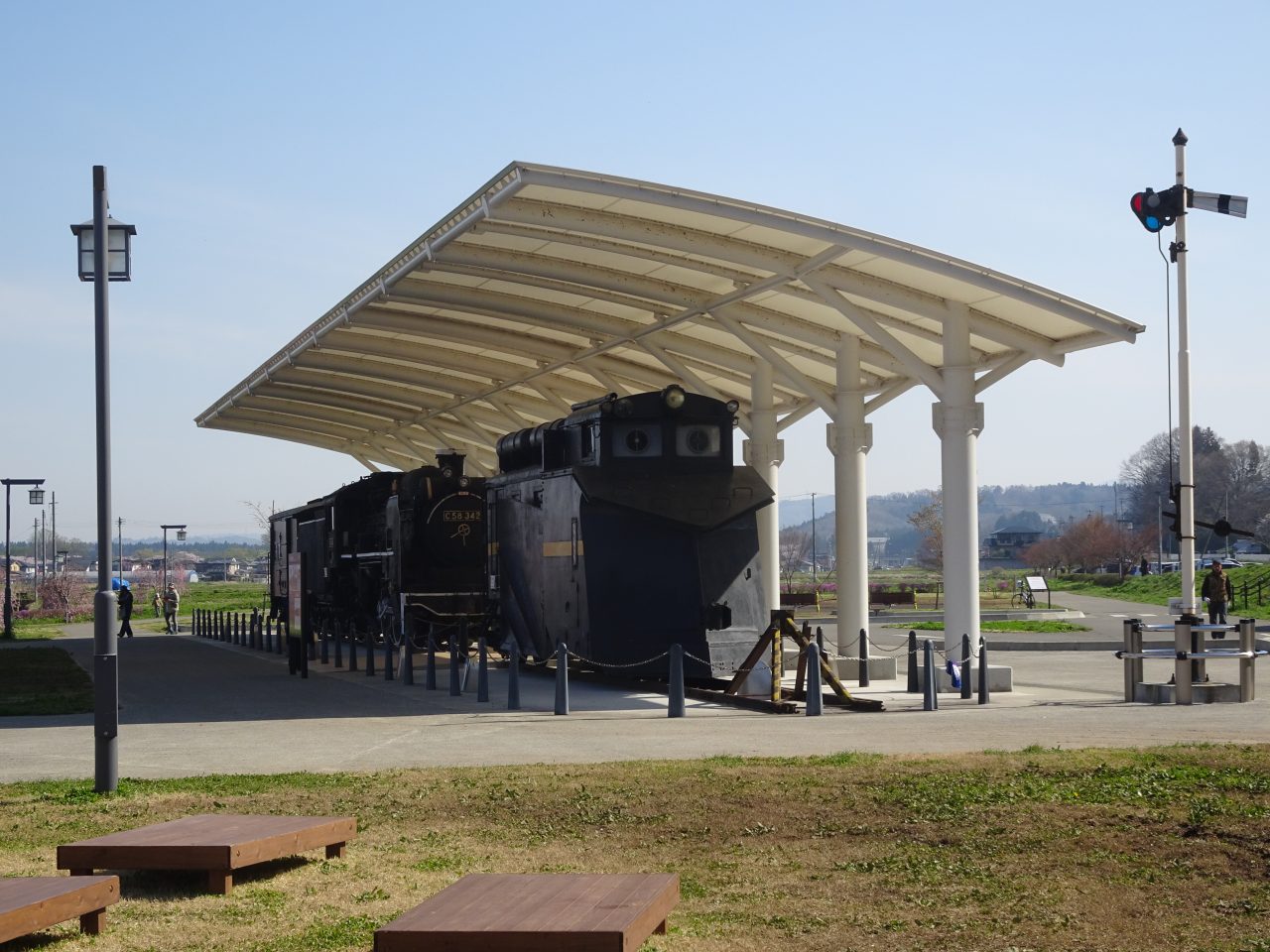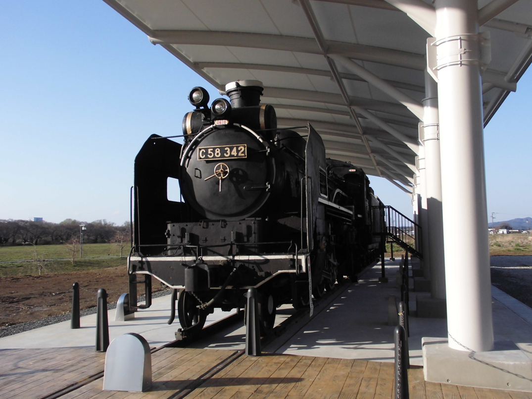 展勝地公園内のSL広場には、C58型のSL(C58 342)、ラッセル車(ロキ228)、緩急車(ワフ29826)、腕木式信号機が設置されており、さくらまつり期間中はSL内部を公開しております。